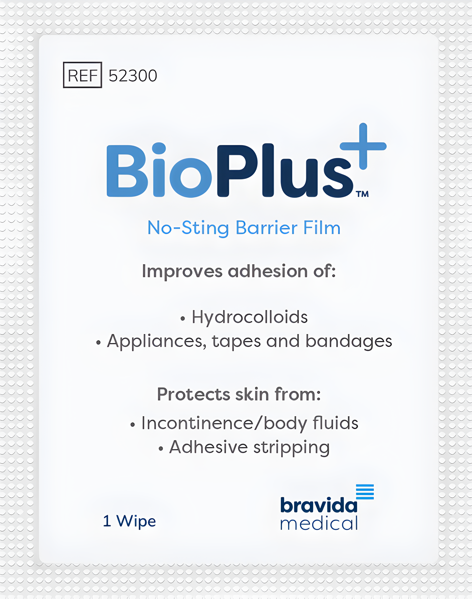 BioPlus+™ skin prep wipes provide a barrier film layer directly on the skin to improve the adhesion of hydrocolloids, appliances, tapes, and bandages. The wipes protect skin from incontinence/ body fluids and adhesive stripping. They are no-sting, Isopropyl alcohol-free, and dry quickly to form a transparent coating on the skin. BioPlus+™ is specifically formulated to improve the adhesion of our hydrocolloid adhesive products, including Men’s Liberty™and CathGrip®.
