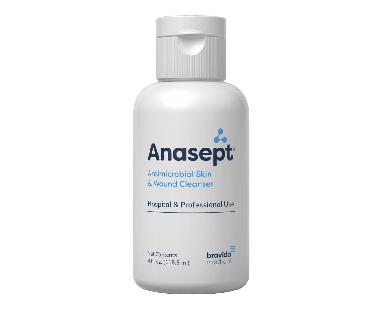 Anasept® Antimicrobial Skin and Wound Cleanser is a clear, isotonic liquid that helps in the mechanical removal of the debris and foreign material from the application site. Dirt, debris and foreign materials are mechanically removed by the action of the fluid (Wound Cleanser) moving across the wound bed or application site. Anasept Antimicrobial Skin and Wound Cleanser contains a 0.057% broad spectrum antimicrobial agent sodium hypochlorite. It inhibits the growth of bacteria such as Staphlyococcus aureus, Psuedomonas aeruginosa, Escherichia coli, Proteus mirabilis, Serratia marcescens, including antibiotic resistant Methicillin Resistant Staphylococcus aureus (MRSA), Vancomycin resistant Enterococcus faecalis (VRE), Acinetobacter baumannii, Clostridium difficile and Carbapenem Resistant E.coli (CRE) that are commonly found in wound bed as well as fungi such as Candida albicans and Aspergillus niger.